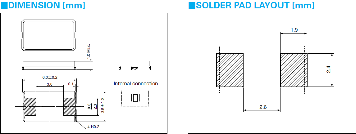 晶體振蕩器的內部電路使用C-MOS。閉鎖、靜電對策請和一般的C-MOS IC一樣考慮,有些OSC晶振沒有和旁路電容器進行內部連接。使用時,請在Vdd-GND之間用0.01μF左右的高頻特性較好的電容器(陶瓷片狀電容器等)以 最短距離連接。關于個別機型請確認宣傳冊、規格書。