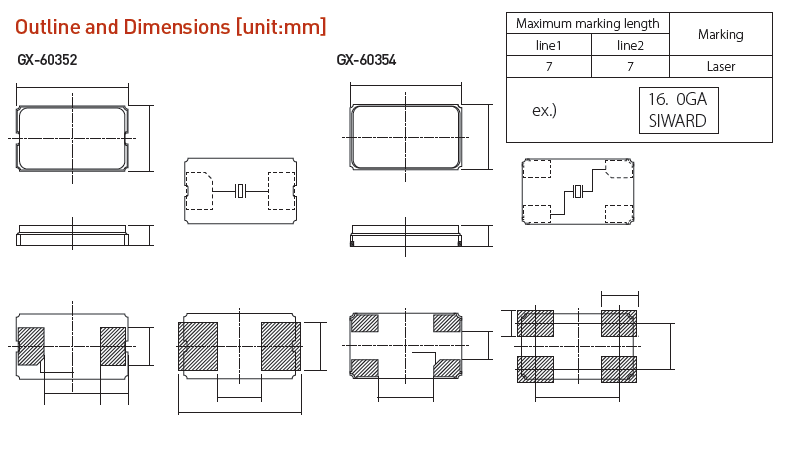 希華晶振,貼片晶振,GX-60354晶振,石英貼片諧振器,貼片石英晶體,體積小,焊接可采用自動(dòng)貼片系統(tǒng),產(chǎn)品本身小型,表面貼片晶振,特別適用于有小型化要求的電子數(shù)碼產(chǎn)品市場(chǎng)領(lǐng)域,因產(chǎn)品小型,薄型優(yōu)勢(shì),耐環(huán)境特性,包括耐高溫,耐沖擊性等,在移動(dòng)通信領(lǐng)域得到了廣泛的應(yīng)用,晶振產(chǎn)品本身可發(fā)揮優(yōu)良的電氣特性,滿足無鉛焊接的高溫回流溫度曲線要求.